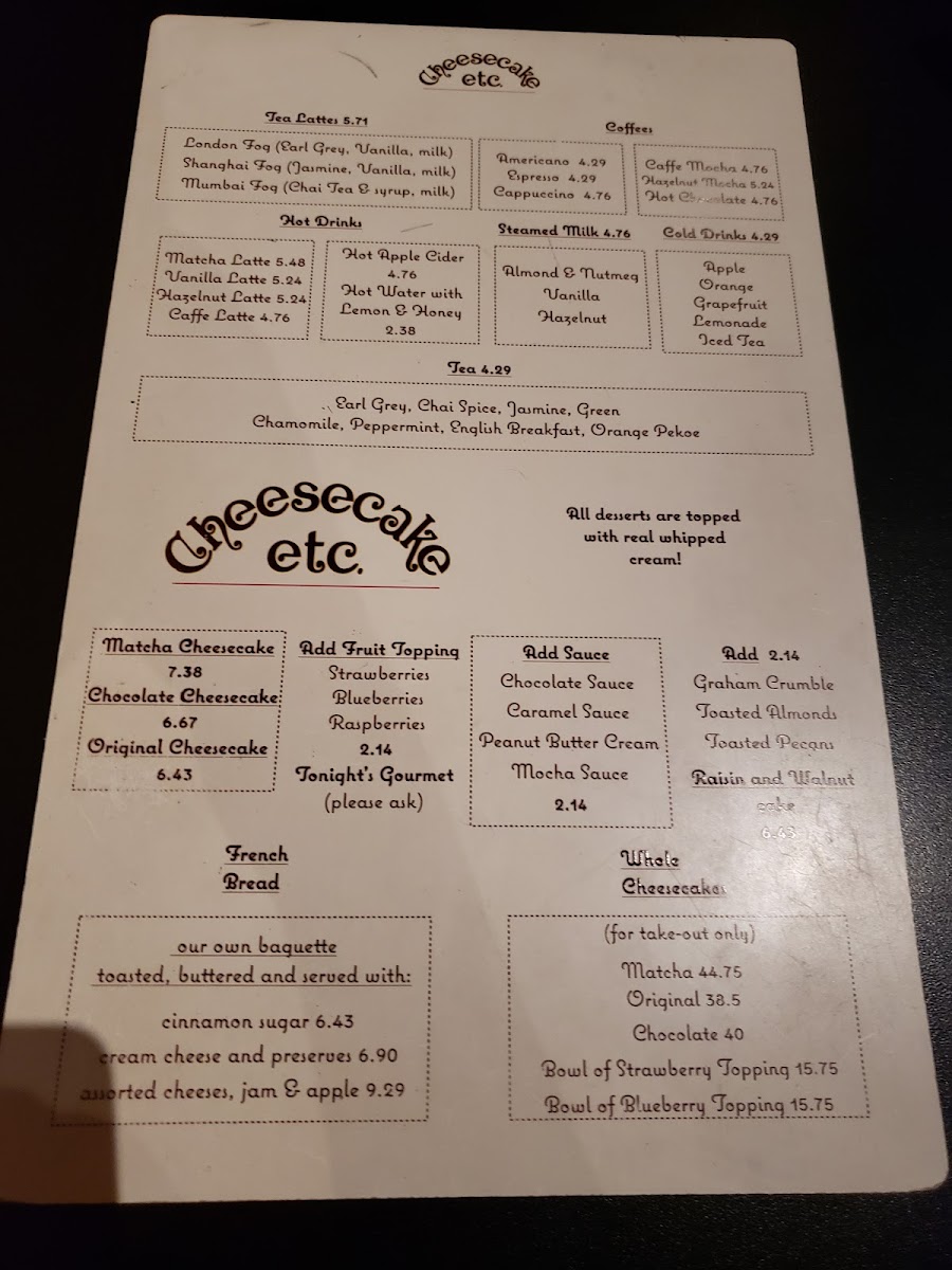 What sets Cheesecake Etc apart is not just their exquisite cakes but the inviting atmosphere enhanced by live piano music. It’s ideal for late-night cravings, as they delightfully remain open until 1 AM. Customer favorites include the Original Cheesecake with Strawberry Topping and the Raisin & Walnut Cake, both highly praised for their quality and taste. With both whole cheesecakes available for takeout and individual slices to savor in-house, Cheesecake Etc is a must-visit destination for a sweet ending to your day.